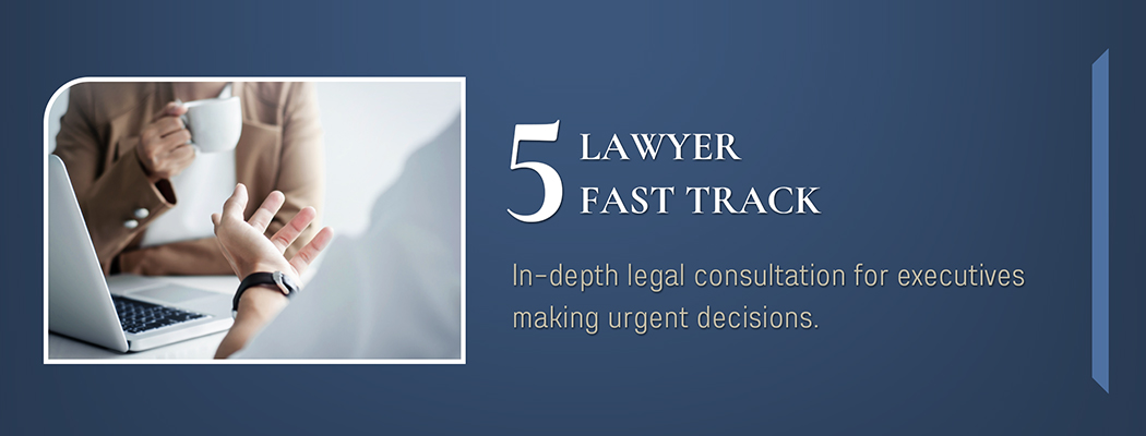 If you’re facing urgent business challenges that require immediate legal solutions, such as high-risk contracts, employee issues, potential termination disputes, or looming litigation Lawyer Fast Track is here to support you. Lawyer Fast Track is a premium legal service tailored for executives, business owners, and decision-making teams who need expert guidance from senior legal professionals. This service delivers practical, well-reasoned, and risk-conscious strategies, quickly and effectively, ready for immediate implementation when it matters most.